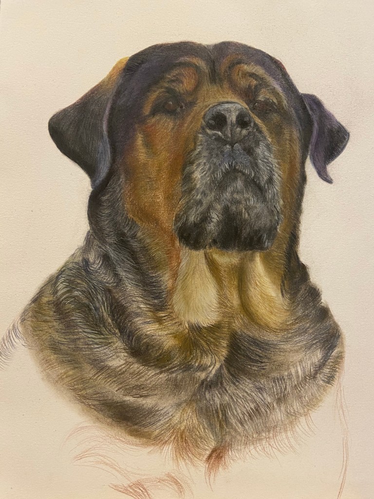 This was supposed to be an 11×14” drawing. Below you can see where it should have ended. But well, you know what happens… I go into a trance like state drawing fur! LOL I wound up extending this baby to the end of the 12×16” paper it was drawn on. The client got a bargain. 👌😁